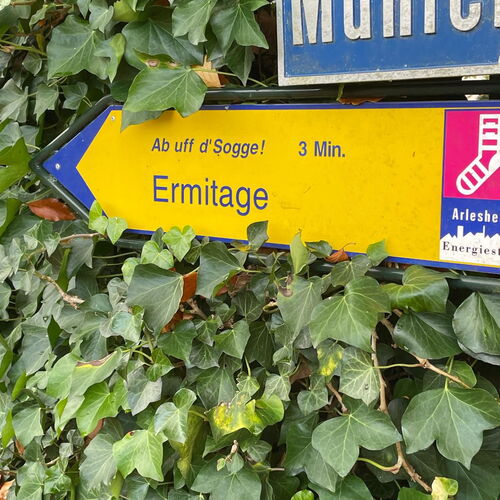 Die Ermitage gilt als der grösste englische Landschaftsgarten der Schweiz. Während der Französischen Revolution völlig zerstört, begann man 1810, sie – leicht verändert – wieder aufzubauen. Heute steht sie unter Denkmal- und Naturschutz und lädt mit ihren verwunschenen Wegen, Teichen und Grotten zu einer kleinen Zeitreise ein.